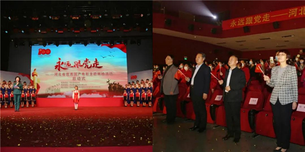 為慶祝中國共產(chǎn)黨成立100周年,進(jìn)一步深化黨史學(xué)習(xí)教育,5月8日,由河北省電影局主辦,河北影視集團(tuán)有限公司承辦的“永遠(yuǎn)跟黨走”——河北省優(yōu)秀國產(chǎn)電影主題展映活動在河北省石家莊市正定縣常山影劇院主會場和塔元莊分會場共同啟動,拉開了展映活動在全省全面開展的帷幕。