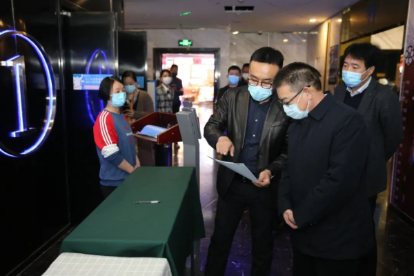 王振儒一行首先來到河北電影電視劇制作中心(河北電影制片廠),對河北影視數(shù)字制作基地已建成的一期項目現(xiàn)場進行實地考察。然后來到金棕櫚先天下影城、金棕櫚東尚影城,對影院的員工健康監(jiān)測和管理、場所疫情防控管理、觀眾進出管理、設施設備消毒管理、突發(fā)情況處置等情況進行了督導檢查。