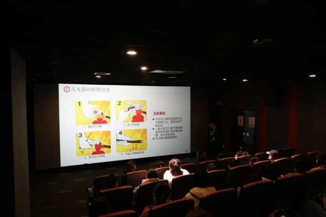 消防安全知識(shí)培訓(xùn)結(jié)束后,進(jìn)行了消防應(yīng)急疏散演練。模擬火災(zāi)現(xiàn)場,全體觀眾在影城工作人員組織引導(dǎo)下,低頭彎腰捂住口鼻,快速、有序通過安全通道逃生。