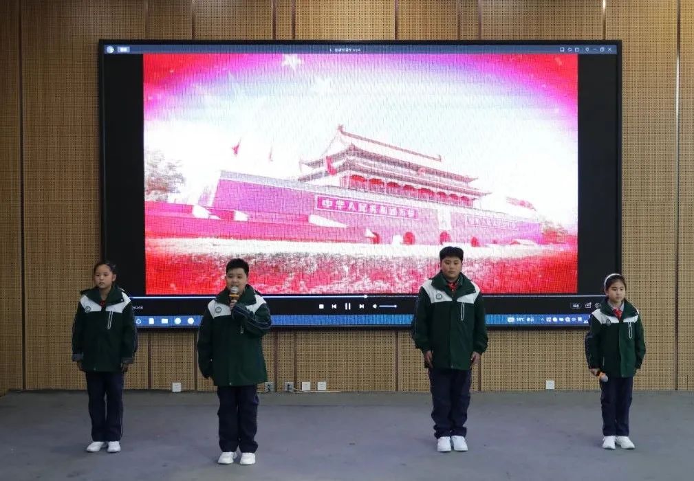 電影放映前,學(xué)生們表演了詩朗誦《我愛你中國》、歌曲《童心向黨》等節(jié)目。