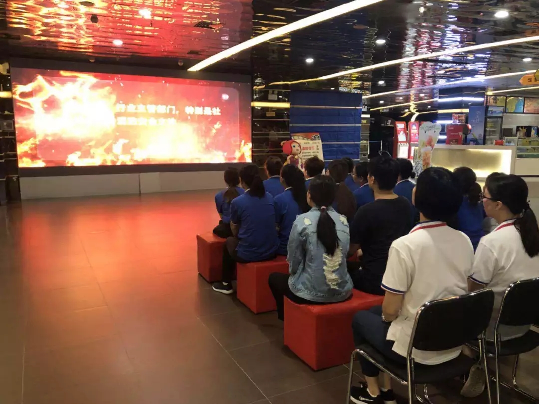 活動開始,影城員工認真觀看《火災(zāi)案例警示片》