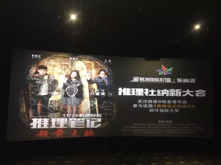 2017年11月19日下午15點(diǎn),一場(chǎng)別出心裁的“推理社納新大會(huì)”暨電影《推理筆記》省會(huì)獨(dú)家點(diǎn)映活動(dòng),在金棕櫚國(guó)際影城東尚店盛大啟幕。這場(chǎng)高智商者們的角逐盛會(huì),現(xiàn)場(chǎng)人頭攢動(dòng),氛圍空前活躍。各位推理迷們紛紛摩拳擦掌、躍躍欲試,準(zhǔn)備大開腦洞一較高下。