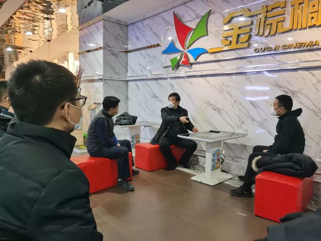 楊揚(yáng)總經(jīng)理在現(xiàn)場和中聯(lián)院線、省電影公司領(lǐng)導(dǎo)并和部分趕到的影城經(jīng)理研討了當(dāng)前疫情情況及對全年工作的影響進(jìn)行了評估,并確定了下一步的工作措施。楊揚(yáng)強(qiáng)調(diào),此次國家延長春節(jié)假期,說明全國防疫任務(wù)艱巨,一定要做好分析研判,拿出具體應(yīng)對措施。疫情對影院業(yè)務(wù)的影響是巨大的,但在突發(fā)疫情面前,一定要服從大局,服從人民群眾的健康和國家整體利益的需要。